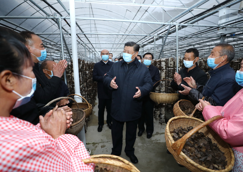 正在陕西考察的习近平总书记20日下午来到柞水县小岭镇金米村。金米村地处秦岭深处,近年来依靠发展木耳等产业摆脱了贫困。村培训中心,几位村民正在做网上直播卖货的准备工作,总书记走到直播平台前,同他们亲切交谈起来。他表示,电商作为新兴业态,既可以推销农副产品、帮助群众脱贫致富,又可以推动乡村振兴,是大有可为的。(文字记者:张晓松 摄影记者:鞠鹏、谢环驰、燕雁、翟健岚)