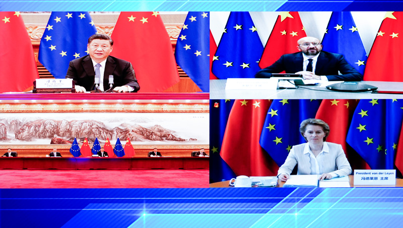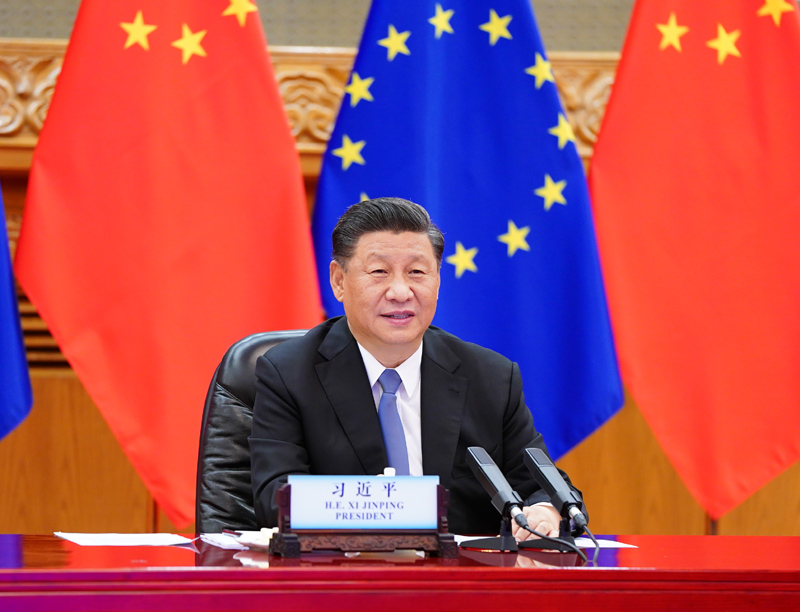 习近平指出,新冠肺炎疫情发生以来,中国和欧盟相互支持、相互帮助。中方愿同欧方携手努力,推动“后疫情时代”中欧关系更加稳健成熟,迈向更高水平。