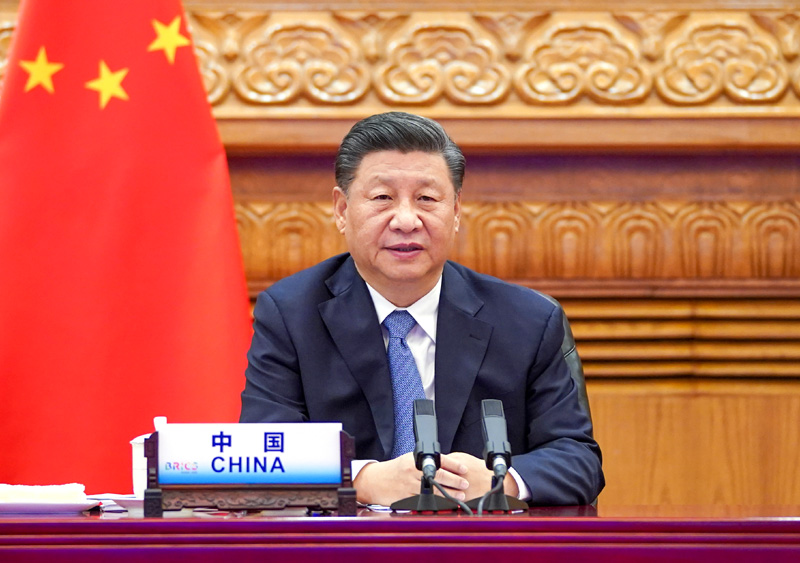 11月17日晚,金砖国家领导人第十二次会晤以视频方式举行。国家主席习近平在北京出席会晤并发表重要讲话。新华社记者 李学仁 摄