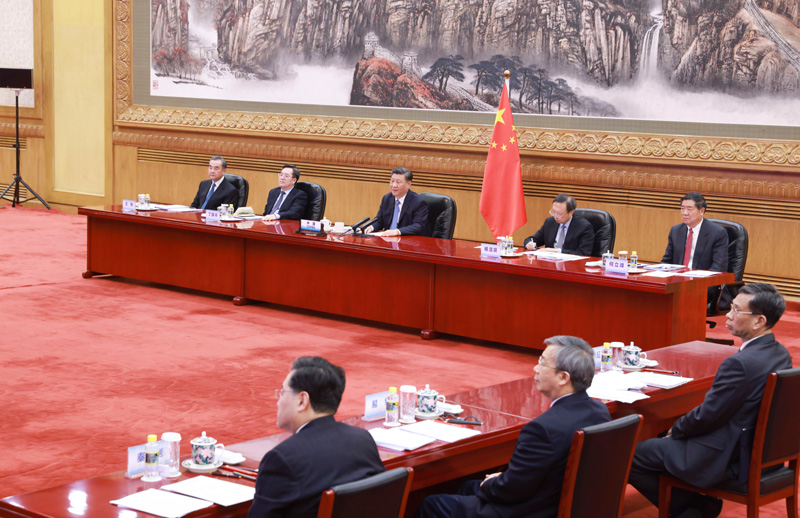 丁薛祥、杨洁篪、王毅、何立峰等参加会晤。