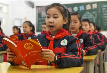 12月3日,河北省遵化市第二实验小学学生在诵读宪法
