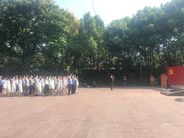 第三项:情感教学,全体学员来到了红岩魂烈士墓广场,为逝去的烈士们敬献花圈,鞠躬默哀。在赵梁龄同志的领读,55名学员进行了入党誓词的宣读,重温入党时庄严神圣的宣誓仪式,在这个特殊的场合,再诵入党誓词,缅怀革命先烈!烈日炎炎,但挡不住同志们学习的热情,汗水淋漓,却浸透着同志们对革命英烈的敬仰。